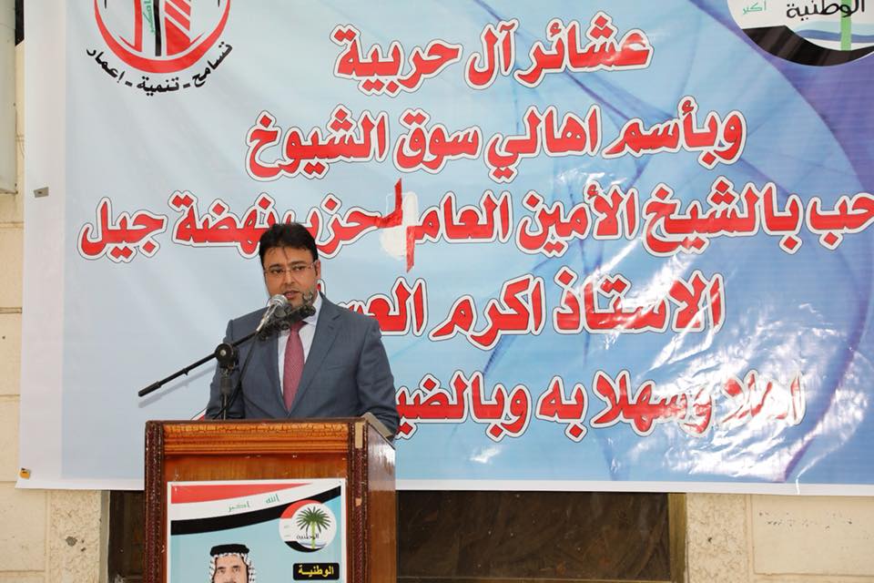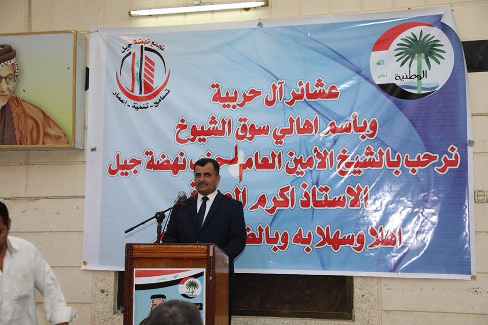 وشدد على ان الإرهابُ خلق بشكلٍ مدروسٍ مِن قِبَلِ أولئكِ العابثينَ ومَنْ سَوّلَت لهم نَفْسُهُم الإساءةَ للعراقْ كوطنٍ ومواطِن على حِسابِ الناسِ وصولاً لمنعِهِم حريةَ الحركة، والعبثْ والفسادْ بأمنِ البلد. ومِن هُنا ومن هذا المُنطَلَق ومِمّا لَمَسناهُ، كوننا جُزءً مِنُكُم عايشنا ذلك الواقِع المَرير، وعايشنا ما عِشتـُمُوهْ، ولَمَسنا ما لَمَستـُـمُوه، وآسينا ما آسيتموه، وشرِبنا مِن وِعاءٍ واحِد، وأكلنا من إناءٍ واحِد، فكانِ لنا خياراً وطنياً لا ثاني له، أن نتحمل المسؤوليةَ مع نُخبةٍ من اخوانكمْ من عمومِ العراق، يتقدمُهم الشبابُ الواعِدْ الذي يعتقدُ في نفسه أنه كفوءٌ لإدارةِ المرحلةِ وتأديةِ الدورِ الوطنيّ الواجبِ تأديتهُ، فكانَ ذلكَ بتشكيلِ تجمِّعِ نَهَضةِ جيل لِجَعـْـلِه عُـنواناً سِياسياً جامِعاً بالقولِ والفعلِ في قوانينَ وثوابتْ مشتركة أساسُها مشروعَ نداءِ وطنْ يتخلله بِناءِ الدولةِ المدنيةِ بشكلِ علميّ مُتطورْ،